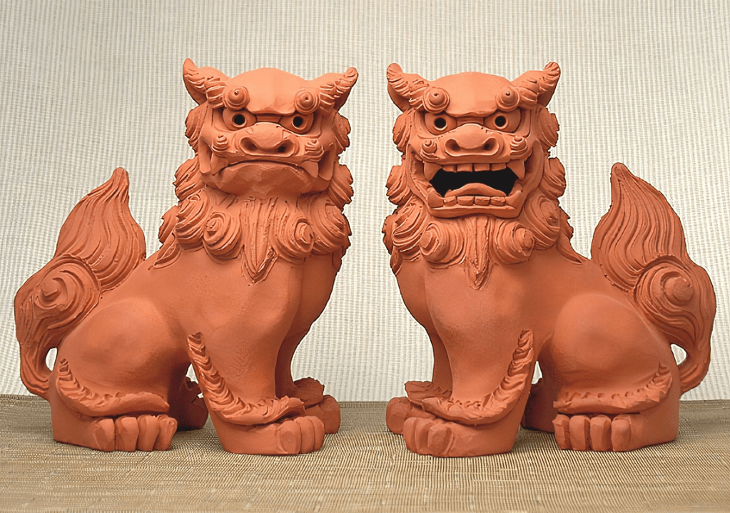 There is much debate as to which Shisa is which–some believe the open-mouthed male scares away evil and the close-mouthed female keeps in goodness, and some believe the close-mouthed male keeps out evil and the open-mouthed female shares goodness. As Shisa have become the mascot for Okinawa, many artists have taken inspiration and created their own Shisa designs. Shisa can be seen in intricately sculpted glass, simply molded clay, and cutely designed drawings.