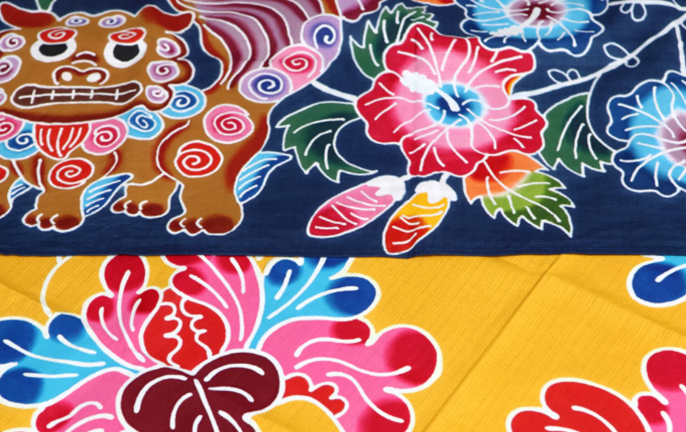 Bingata is a traditional cloth dyeing method that uses masking starch as a stencil to create designs. The word is said to originate from the combination of two words: bin, meaning ‘colors’, and gata, meaning ‘forms’.